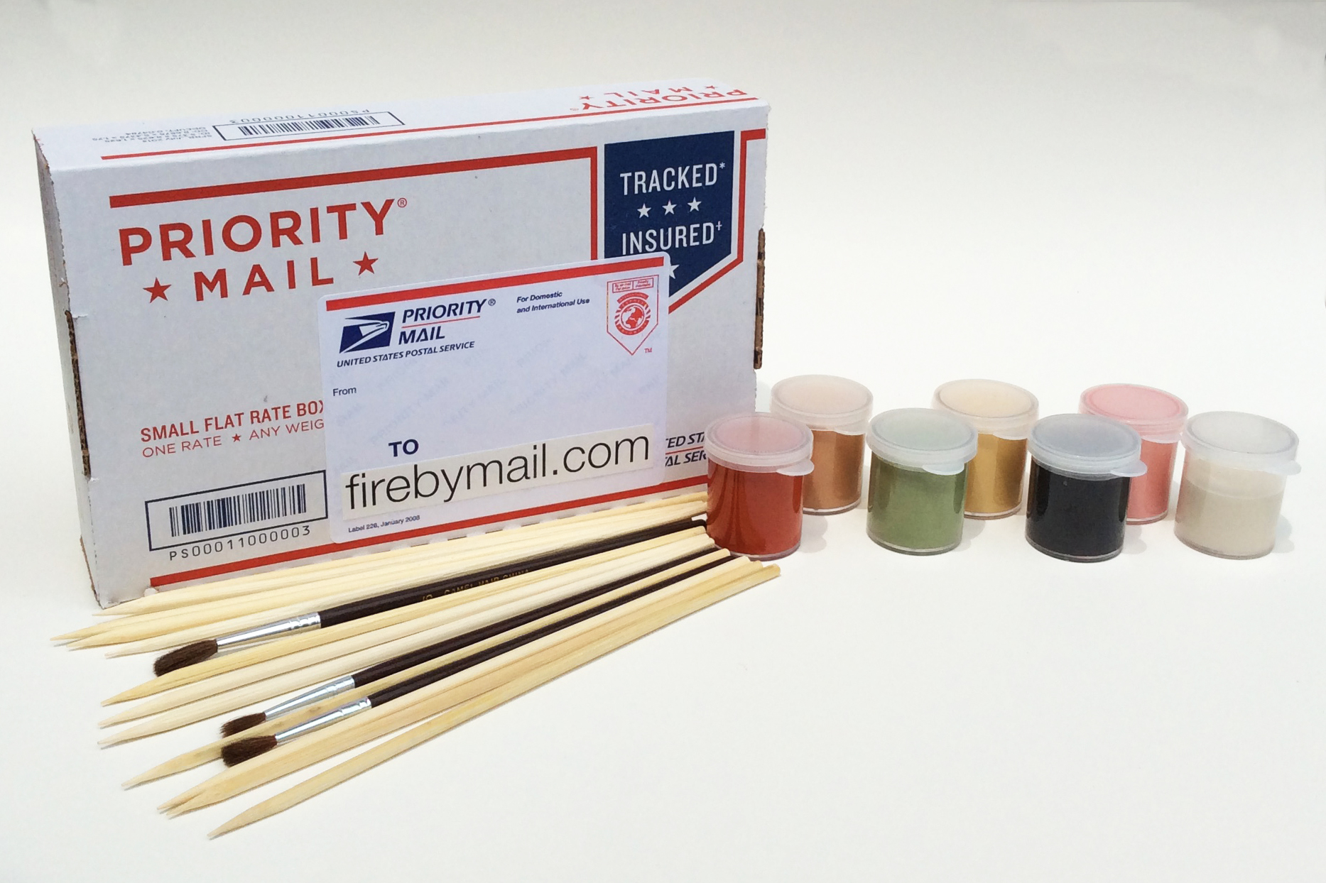 firebymail.com kits contain everything you need to glaze your blanks: vibrant color underglazes by AMACO made in U.S.A., white accent glaze, clear high gloss overglaze, three different size brushes and wooden sticks that make easy to hold beads while glazing. All glazes are nontoxic and lead free.